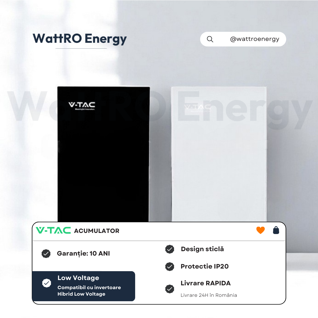 Acumulator V-TAC 16.07 kWh Negru Low Voltage WattRo Energy importator echipamente fotovoltaice panouri fotovoltaice