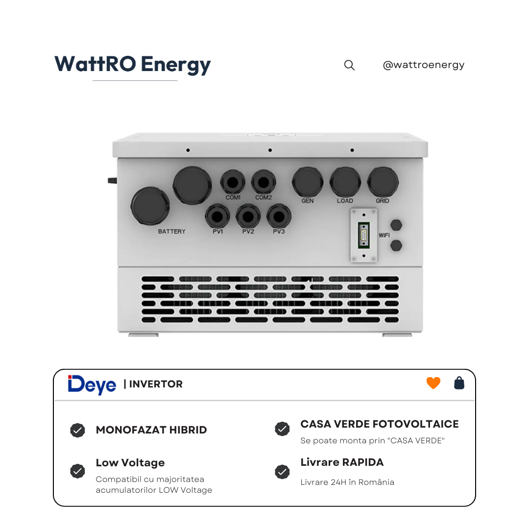 Invertor Hibrid Deye Hibrid SUN-16K-SG01LP1-EU WattRo Energy importator echipamente fotovoltaice panouri fotovoltaice