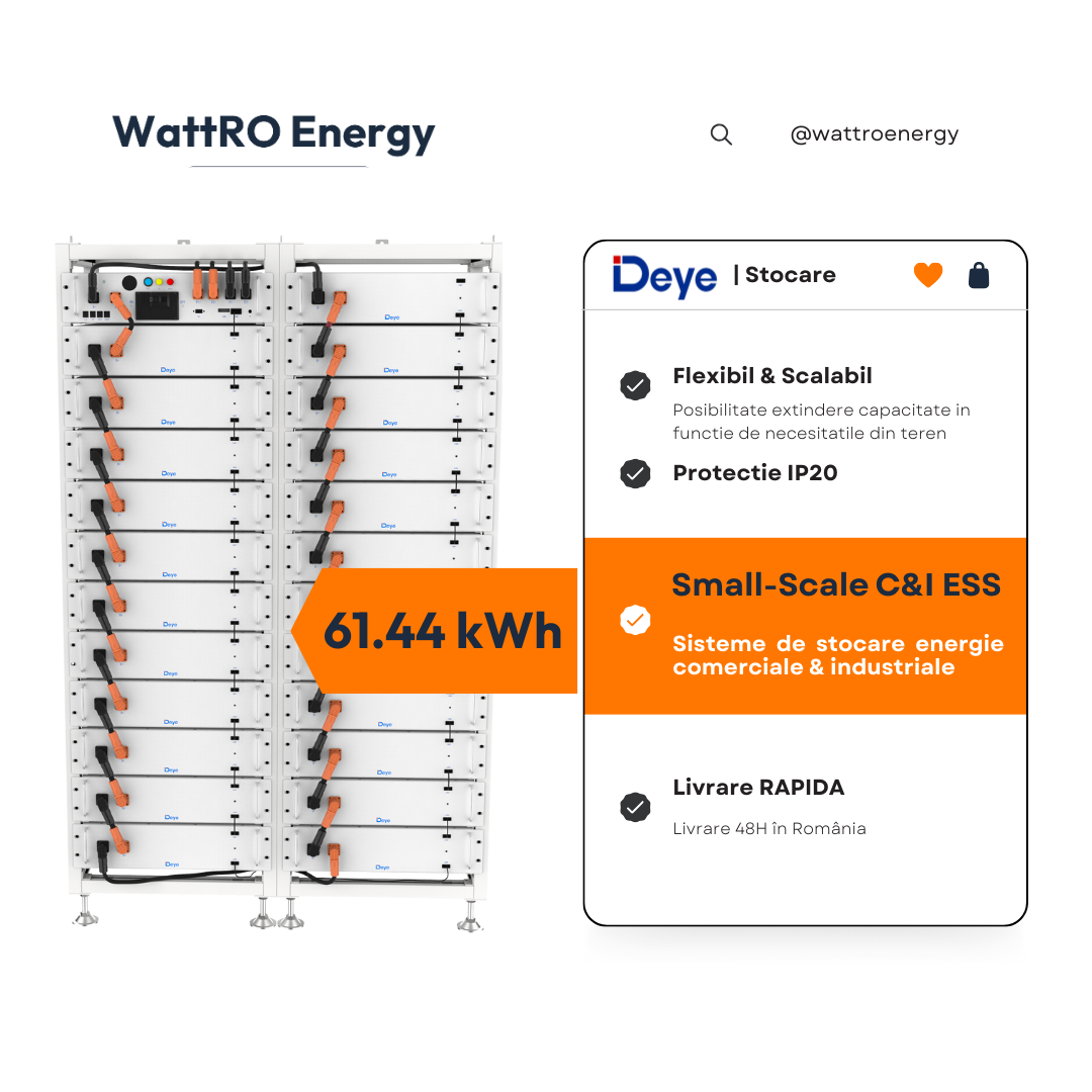 Sistemul de stocare Deye BOS-A High Voltage 61.44 kWh IP20 este o soluție modulară profesională pentru stocarea energiei, dedicată aplicațiilor comerciale și industriale de mică și medie dimensiune. Bazat pe tehnologia LiFePO₄, sistemul oferă siguranță ridicată, eficiență energetică superioară și posibilitate de extindere ulterioară.